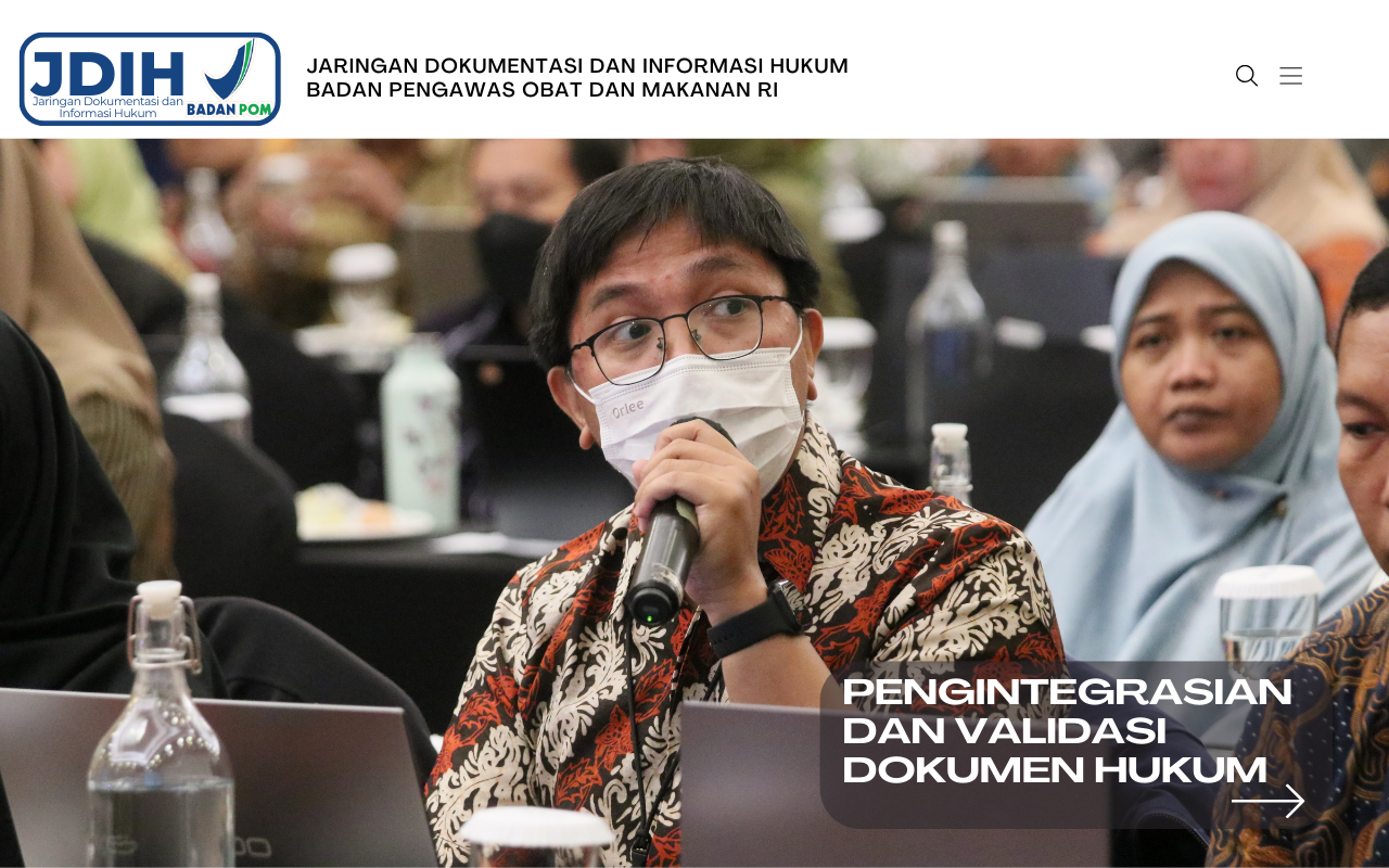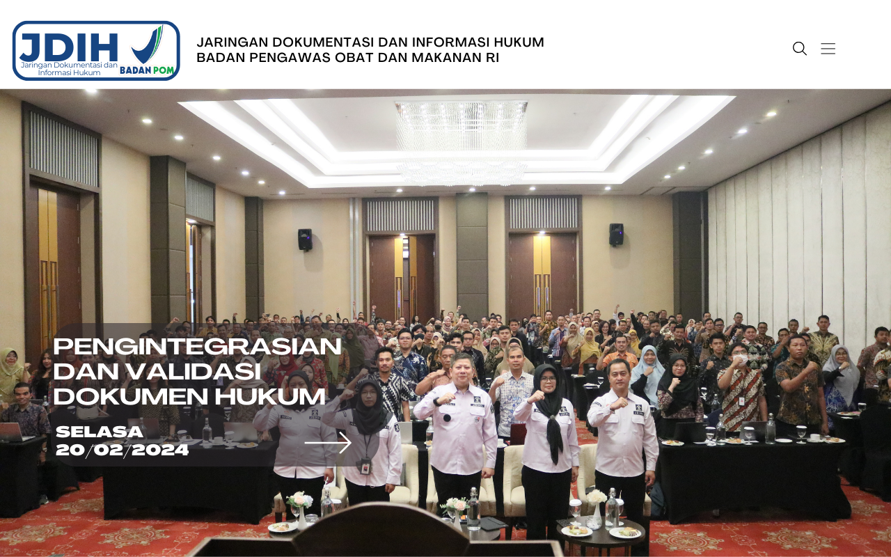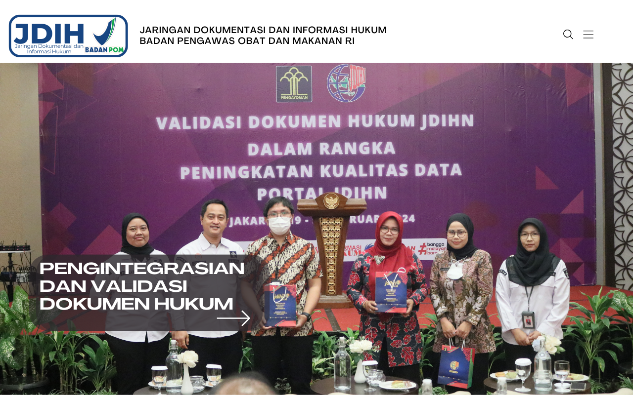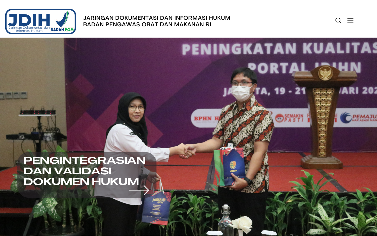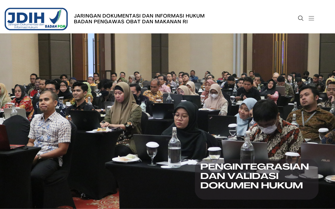 Tingkatkan kompetensi pengelola JDIH. JDIH BPOM berpartisipasi dalam acara Pengintegrasian dan Validasi Dokumen Hukum Anggota Jaringan Dokumen dan Informasi Hukum Nasional (JDIHN) yang dilaksanakan oleh Badan Pembinaan Hukum Nasional (BPHN)